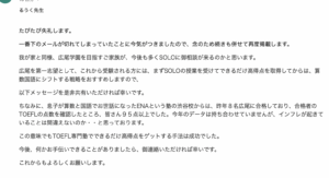 この意味でもTOEFL専門塾でできるだけ高得点をゲットする手法は成功でした。