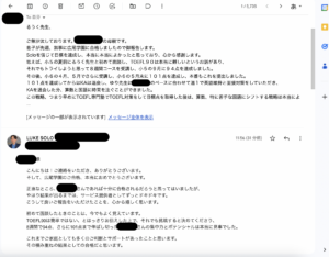 一番下のメールが切れてしまっていたことに今気がつきましたので、念のため続きも併せて再度掲載します。
